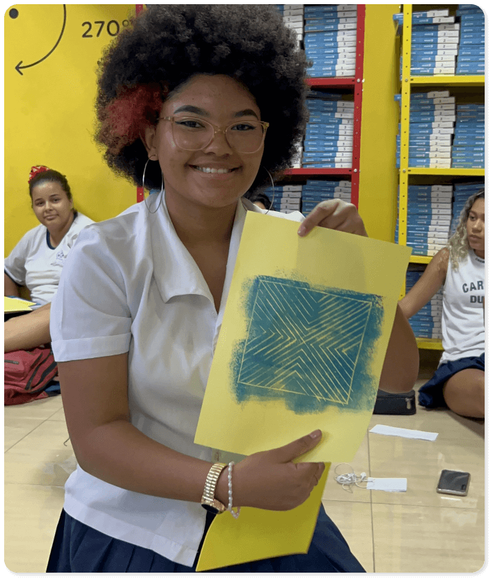 Esse processo é organizado em módulos temáticos que conectam ancestralidade, cidadania e território. Museus, universidades e centros culturais deixam de ser espaços distantes e passam a integrar a experiência concreta desses jovens, promovendo o direito à cidade. O material utilizado nas atividades é desenvolvido pela equipe pedagógica do programa, composta por pesquisadores em nível de pós-graduação, garantindo consistência e adequação às diferentes realidades escolares. Conectamos a capacidade crítica desenvolvida nas oficinas com estratégias práticas de acesso ao ensino superior e ao mercado de trabalho, permitindo que o estudante não apenas enxergue novos caminhos, mas construa as ferramentas necessárias para percorrê-los com segurança e autoestima.